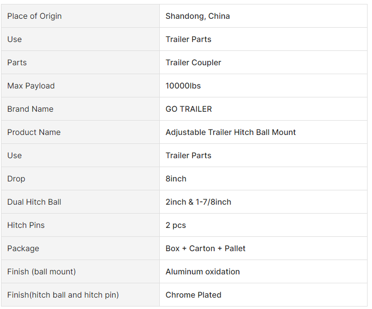 Finish(hitch ball and hitch pin) :Chrome Plated